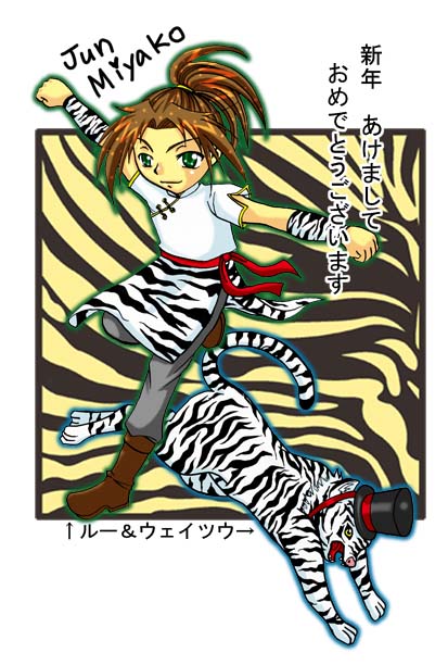 2010年の年賀状に使用したイラストです。 この年は寅(トラ)年なのでルーの相棒である ホワイトタイガーのウェイツウが登場です。 漫画に登場するよりイラストで先に登場するのは、ままあることです。 動物を描くのは毎回大変ですが自分のイメージ通りにウェイツウの ポーズをつけるのが少し大変でした。 ■イラストを見る |